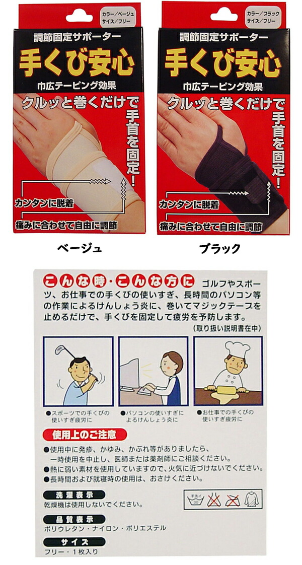 ハヤシ・ニット 調節固定サポーター 手首安心