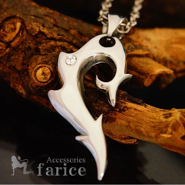 トライバル フィッシュフック 釣り針 ワンポイント キュービックジルコニア ハード クール シンプル メンズネックレス ステンレス ペンダント