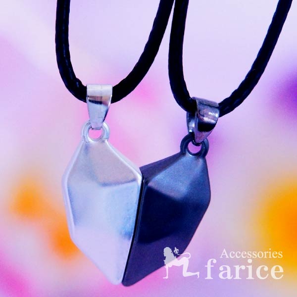 ・ペア シンプル お揃い 大人 ロックハート さりげない カップル ペア 磁石 マグネット ネックレス ペンダント 黒紐 【シルバー&ブラック2個セット】
