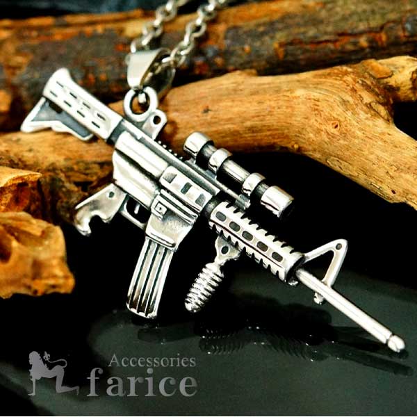 ・ライフルのスコープ(照準器)やマガジン(弾倉)など再現した精巧なステンレスペンダントです