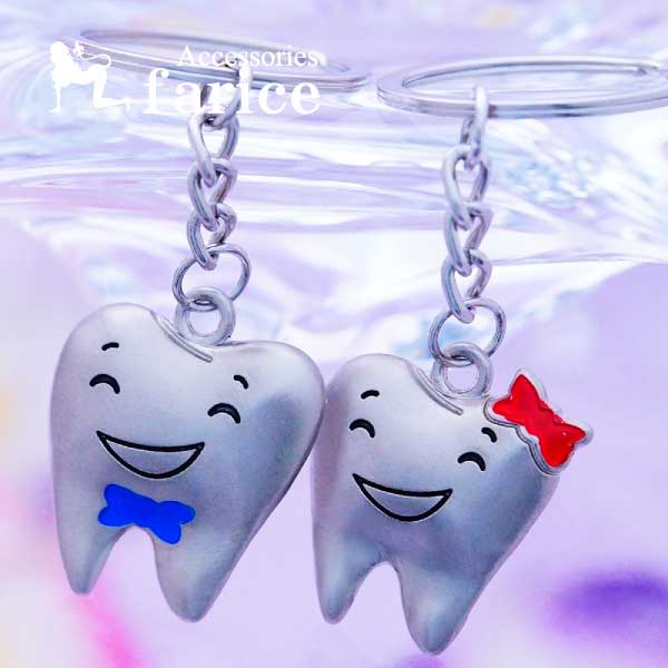 お揃いキーホルダー 笑顔 元気な歯 歯を大切に 健康な歯 スマイル にこにこ 歯医者さん ご褒美 キーホルダー レッド&ブルー 2個セット ペア キーホルダー