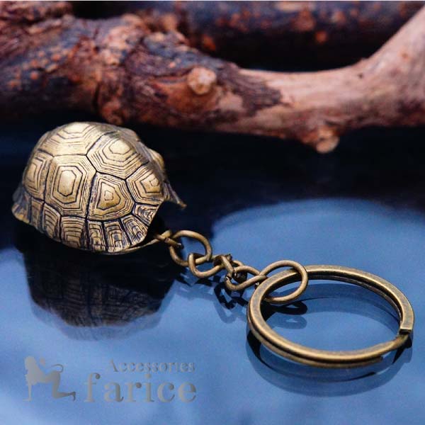 ・長生きの亀と真鍮のビンテージゴールドカラーの骨董品のような落ち着いた色味がマッチした大人のキーホルダー