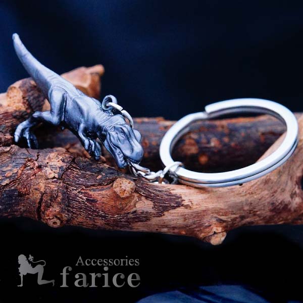 恐竜 ティラノサウルス ミニ 恐竜グッズ 肉食 ティラノ プチ かわいい プレゼント メタル ブラック グレー キーホルダー