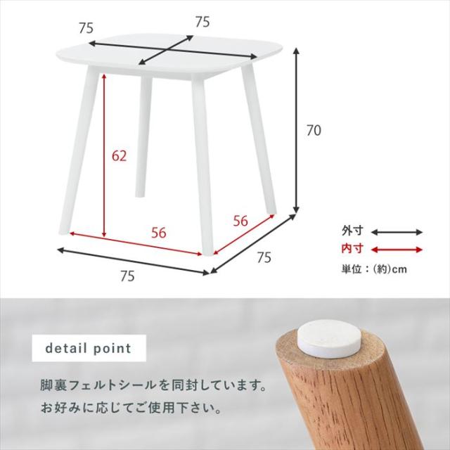 ダイニングテーブル 幅75 通販 BT-8627 ダイニング テーブル 食卓 角丸 デスク 2人用 一人暮らし 斜め脚 正方形 木製 天然木 ナチュラル 北欧 おしゃれ シンプル 幅75×奥行75×高さ70cm 家具 インテリア