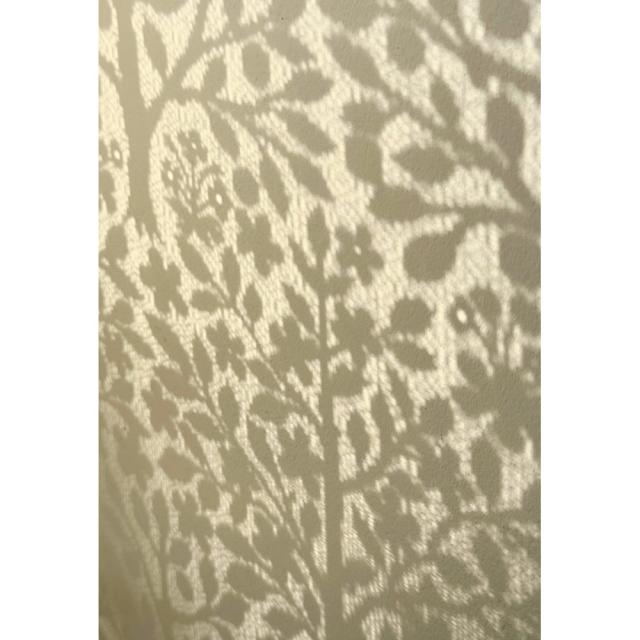 木漏れ日は、木々と光が織りなす自然からの贈り物です。室内にいても、木漏れ日を感じる。こころがほっと癒される。そんなレースカーテンが出来上がりました。柄は、吉谷さんが自らデザイン。花咲く春から葉が色づき実をつけるまで、自然を楽しめるようなデザインです。幹の根元には、ビオラやデージーの小花が咲いています。一枚の布の中で四季を感じる、室内にいても自然を感じられる美しいデザインに仕上がりました。朝から夕方まで、変化する光と影の美しさを楽しんで