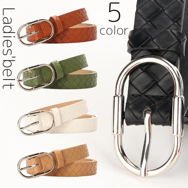 ベルト レディース 女性用 編み込み 編目 レザー調 フェイクレザー ウエストマーク サイズ調節可 バックル 無地 単色 シンプ