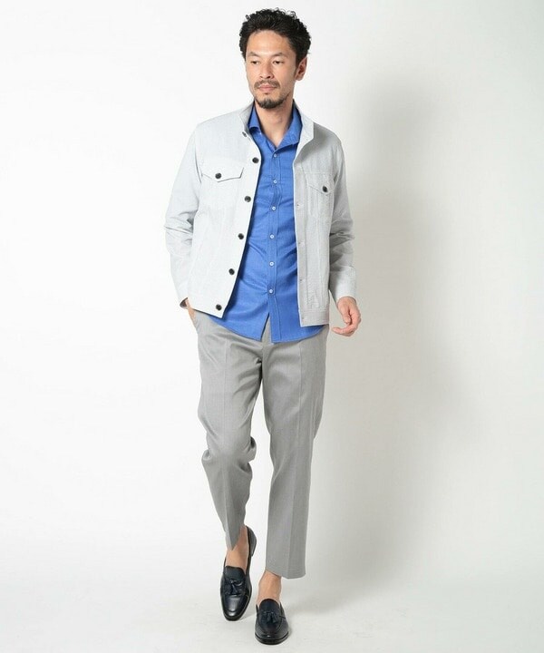 ポロシャツとの相性は抜群のほか、半袖シャツと合わせビジネス対応をしても可能。