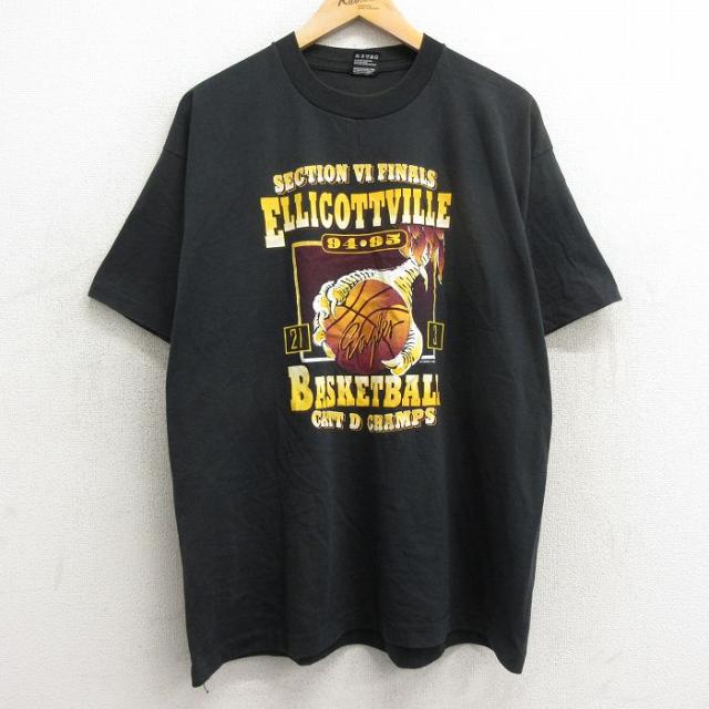 【商品名】 XL★古着 フルーツオブザルーム 半袖 ビンテージ Tシャツ メンズ 90年代 90s エリコットビル バスケットボール 大きいサイズ クルーネック USA製 黒