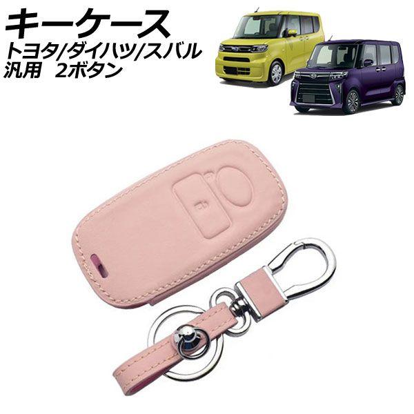 キーケース ピンク 2ボタン レザー製 カラビナ付き トヨタ ダイハツ スバル 汎用 ライズ タント サンバーバン など AP-AS1009-PI