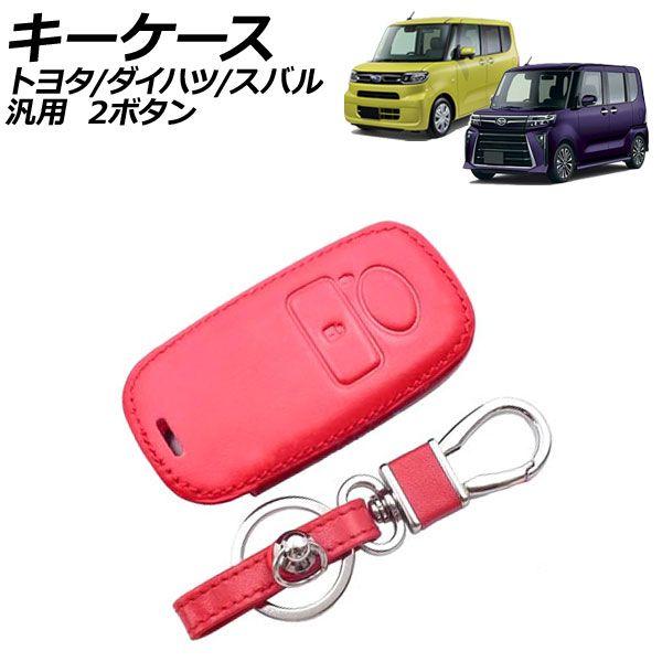 キーケース レッド 2ボタン レザー製 カラビナ付き トヨタ ダイハツ スバル 汎用 ライズ タント サンバーバン など AP-AS1009-RD