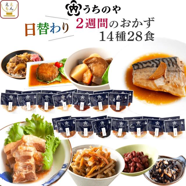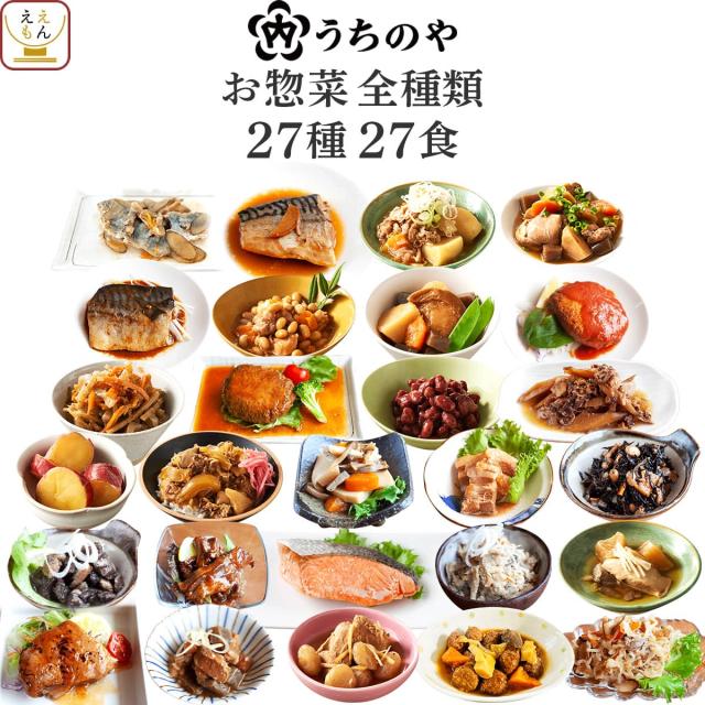人気 惣菜 の 内野家 uchipac ウチパク シリーズ が「 うちのや 」へとリニューアル! うちのや 27食 詰め合わせ 常温保存 惣菜セット肉じゃが ハンバーグ や 煮魚 焼き魚 煮物 おばんざい 等 肉 魚 野菜 の お惣菜 で種類も豊富。 毎日 の 食事 や お弁当 の おかず お惣菜 にも お手軽 簡単 調理 で 時短 ごはん に最適!