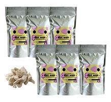 ドットわんフリーズドライ チキン ● 食事(普段のドッグフード等)にトッピングして与えてください。指で潰して粉にすることも簡単なのでアゴの弱った老犬や流動食しか食べることができない時にも粉をふり入れて与えることができます。またベタベタしないので散歩の携帯にも便利です。フリーズドライ(真空冷凍乾燥)なので ●さらさらしてベタつかない。 ●栄養分がこわれていない。 ●消化吸収が良い。 ●保存料がなくても長期保存ができる。 自由に与えてください。ただしフリーズドライチキンの一粒は約5.2キロカロリーです。カロリーオーバーにならないようにわんちゃんの体格にあわせてあげてください。 ひと手間応援ドッグフード・おやつ・散歩・しつけ・訓練・旅行などの携帯食・ドッグフードや手作りごはんへのトッピング/常備食・天然サプリメント・タンパク源補給・食細の回復食 などに利用できます。 ● 原材料: 国産鶏胸肉 ● 原産国: 日本
