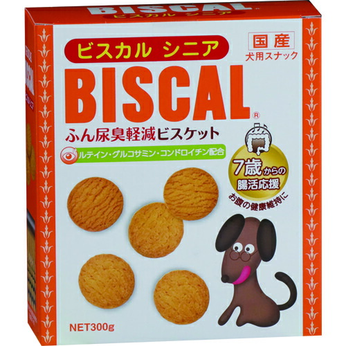 ビスカルシニア 目の健康のためにルティン、関節の健康のためにグルコサミン、コンドロイチンを配合した健康応援ビスケットです。気になるふん尿臭も軽減します。