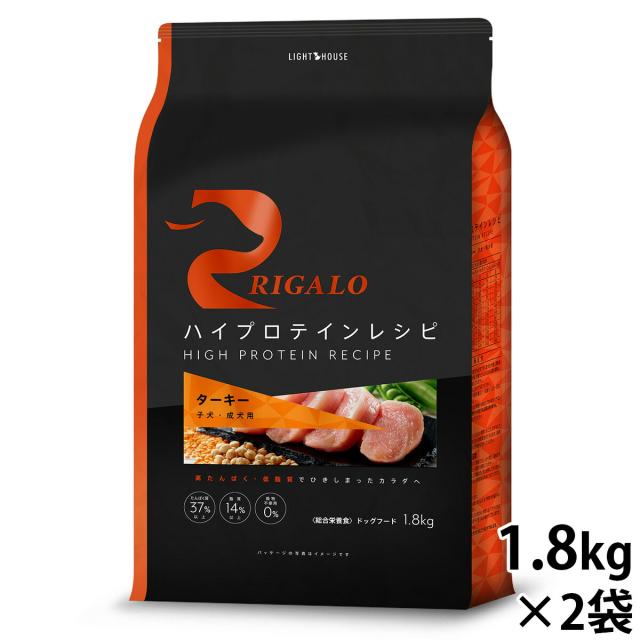 リガロ RIGALO ドッグフード ハイプロテインレシピ 子犬・成犬用 ターキー 1.8kg×2袋 犬 ドライフード 総合栄養食 無添加 穀物不使用 グレインフリー リニューアル【送料無料】
