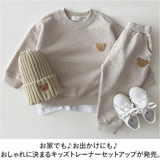 ベビー服 かわいい 通販 スウェット上下 スウェットセット トレーナー パンツ ズボン 長袖 トップス 男女兼用 パジャマ ルームウェア 男の子 女の子 セットアップ 子供服 くま