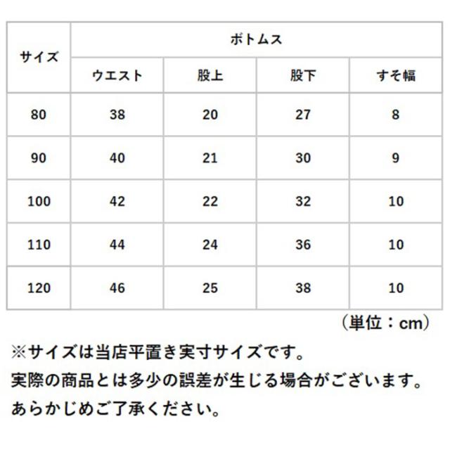 | サイズ | [ベビー] ・80cm ・90cm ・100cm ・110cm ・120cm ※サイズについて詳細は、商品画像の中にあるサイズ表をご覧くださいませ。 |