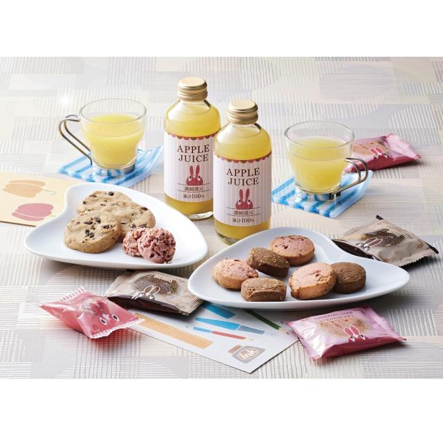 ■商品内容:アップルジュース180ml×4、焼きほろろクッキー(ココア・ストロベリー)各2、チョコクランチ(ストロベリー)×3、ナッツとチョコのざっくりクッキー×2