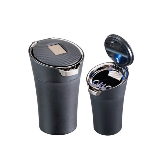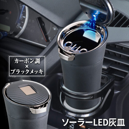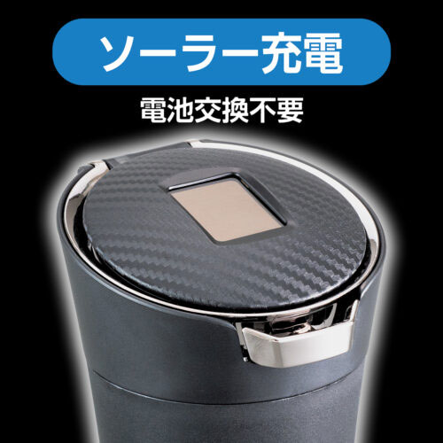 カーボンソーラーアッシュ ブラック 灰皿 吸い殻入れ LED照明付 ソーラー充電 ワンプッシュレバー セイワ WA130