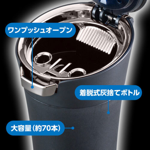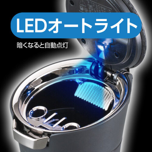 ●暗くなると点灯、明るくなると消灯するオートライト機能のブルーLED照明がついたソーラータイプの灰皿です。