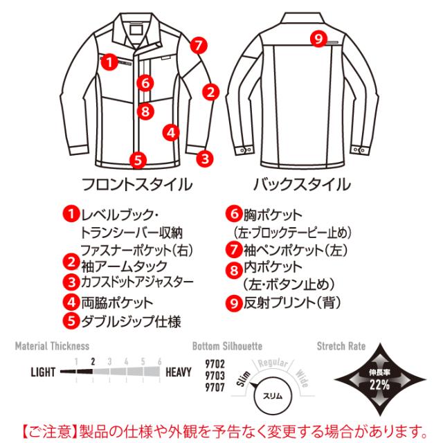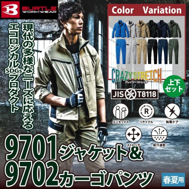 バートル BURTLE 作業服 作業着 上下セット 9701 ジャケット と 9702 カーゴパンツ