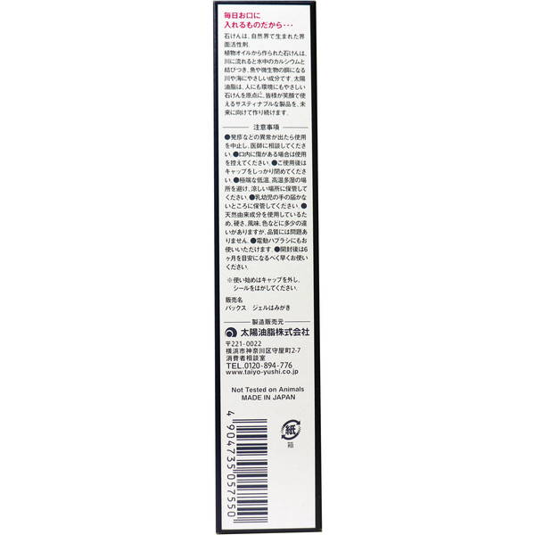 ●石油由来原料・合成界面活性剤・鉱物油・合成ポリマー・水酸化アルミニウム・合成防腐剤・合成香料・合成着色料・プロピレングリコール・サッカリンはすべて無添加です。