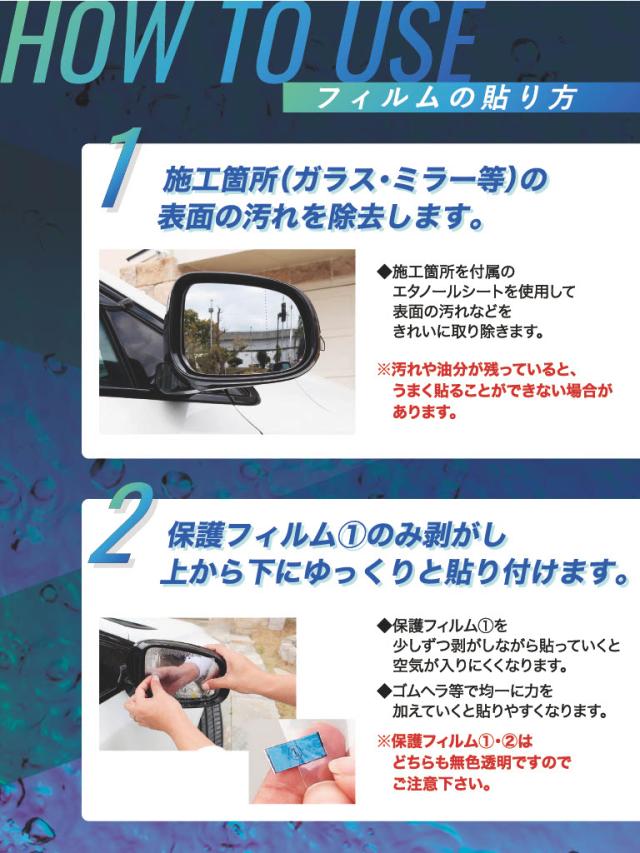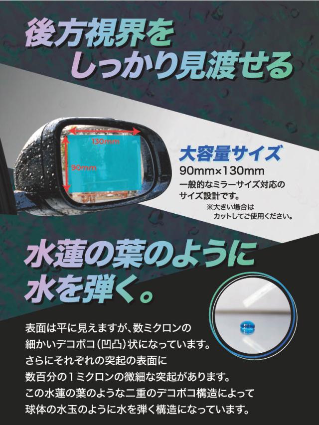 業界初、超撥水ミラーフィルム CAR BEAUTY LAB ナノコートミラーフィルム(左右セット)ドアミラーに貼るだけで雨の日に見えずらくなる水滴を弾いて視界をクリアーに カービューティラボ CBL21