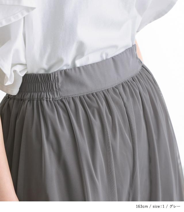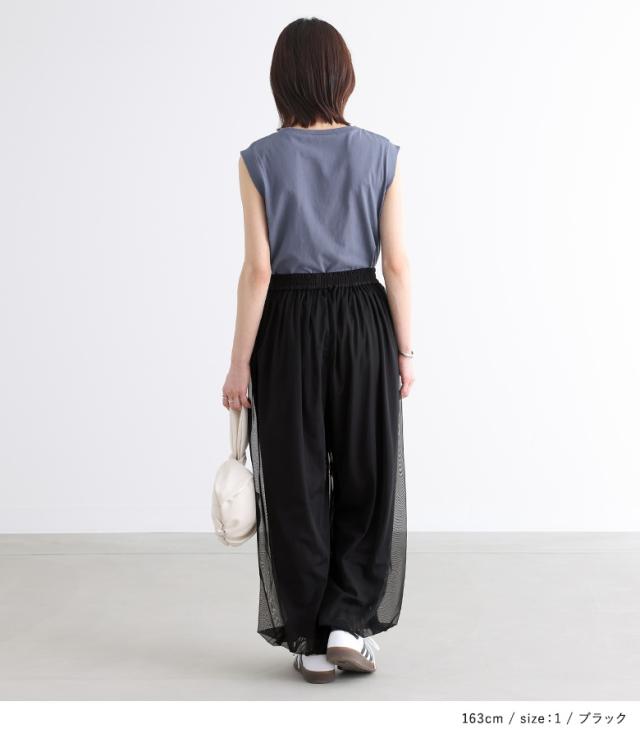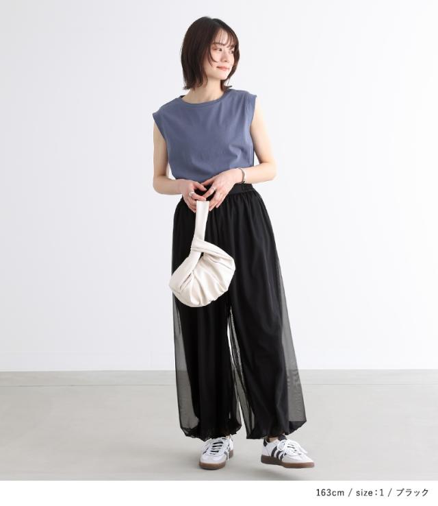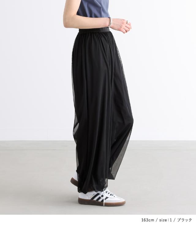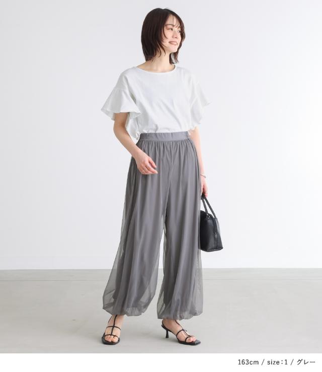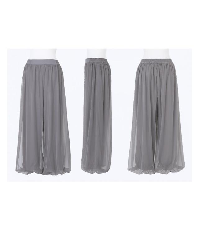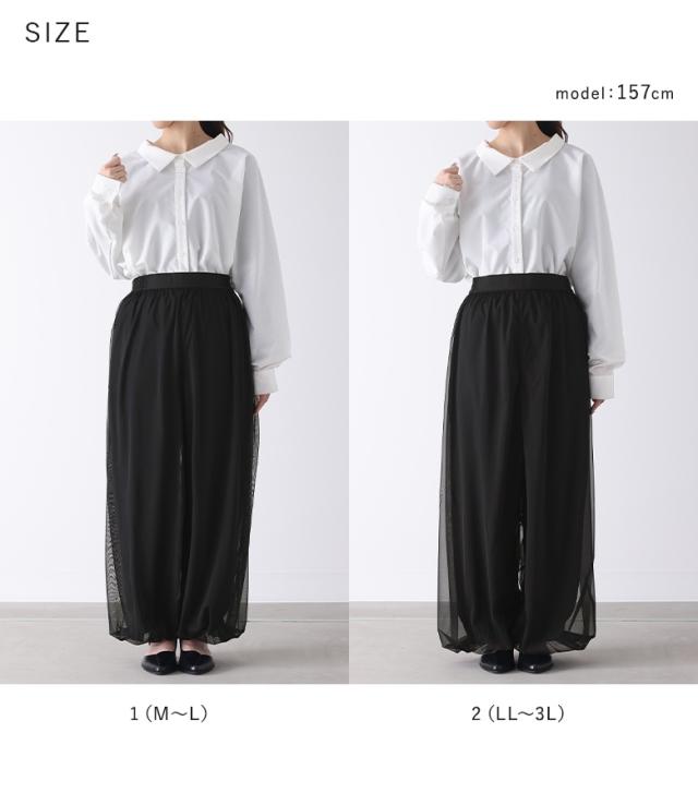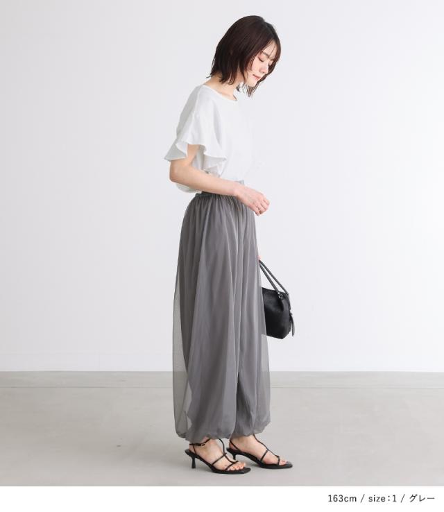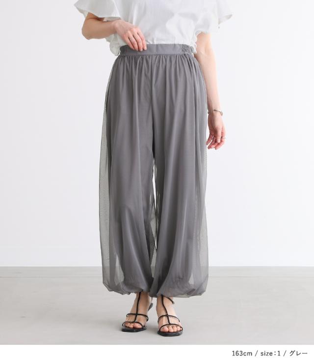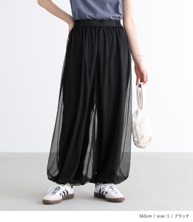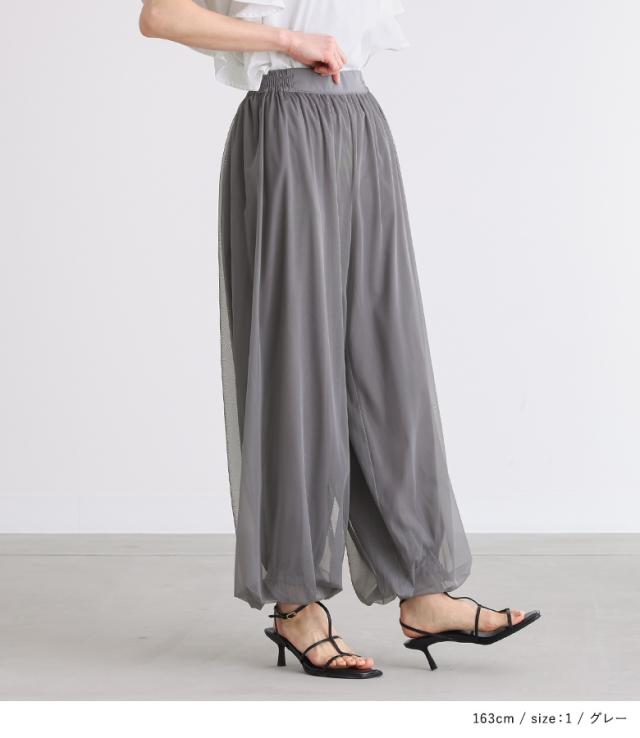 『チュールバルーンパンツ』【メール便不可】【20】[パンツ ボトムス レディース ロング丈 無地 チュール バルーン ギャザー ヨーク 裏地付き ウエストベルト]