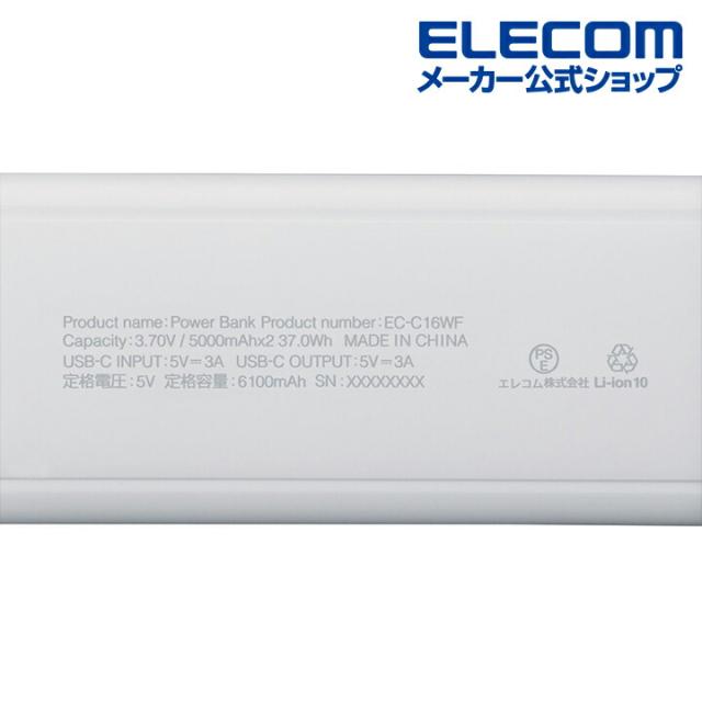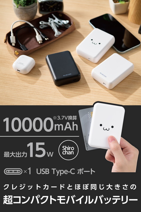 【在庫処分・お買い得!】 エレコム モバイルバッテリー 超コンパクト 10000mAh 大容量 3A USB Type-C×1 15W リチウムイオン電池 しろちゃん ┃EC-C16WF