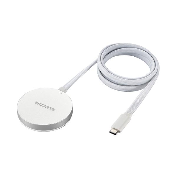 エレコム Qi2規格対応 ワイヤレス充電器 マグネット メッシュケーブル 15W・卓上 シルバ- ┃W-MA05SV