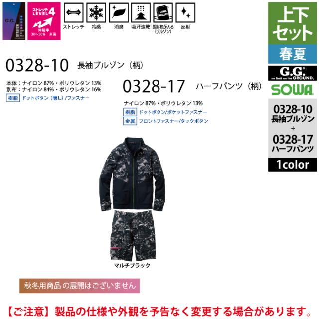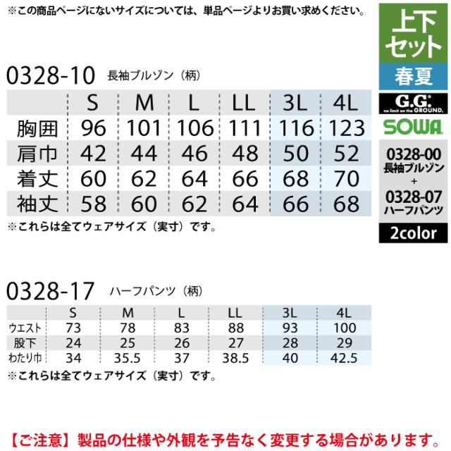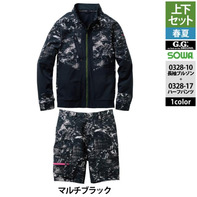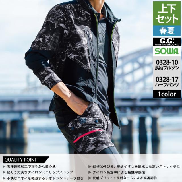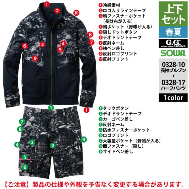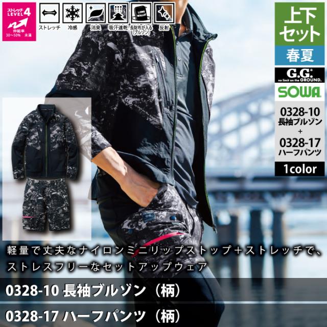桑和 SOWA 作業服 上下セット 春夏用 0328-10 長袖ブルゾンS-3L と 0328-17 ハーフパンツ S-3L 作業着 作業ズボン