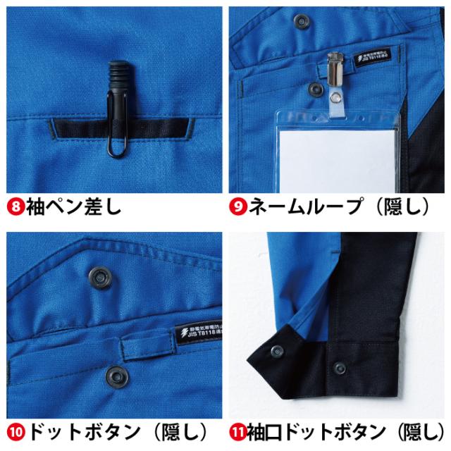 ◇ストレッチ・制電性素材・レディース対応・イージーケア・野帳ポケット・反射・環境配慮素材・樹脂(ファスナー/ドットボタン(隠し))