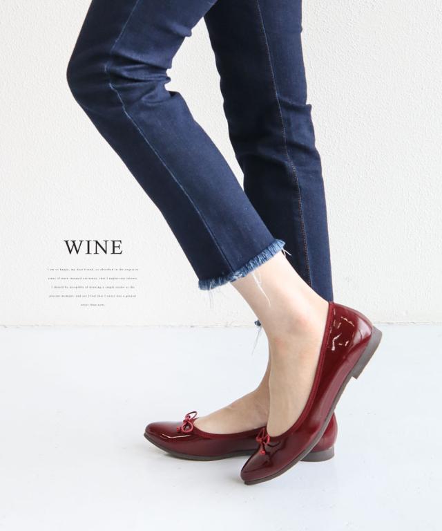 パンプス ローヒール リボン パンプス 黒 エナメル ぺたんこ パンプス 歩きやすい フラットシューズ フォーマル 通勤 リボンパンプス アーモンドトゥ 日本製 ブラック グレー ワインレッド 赤 49102