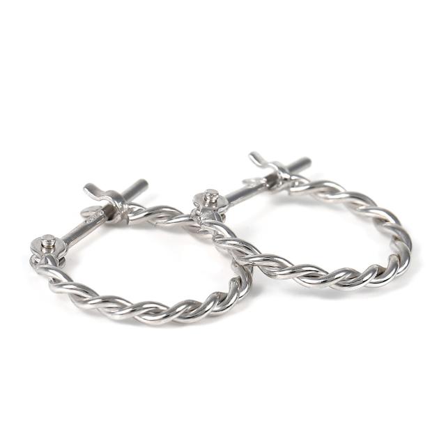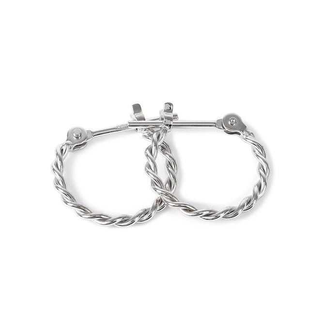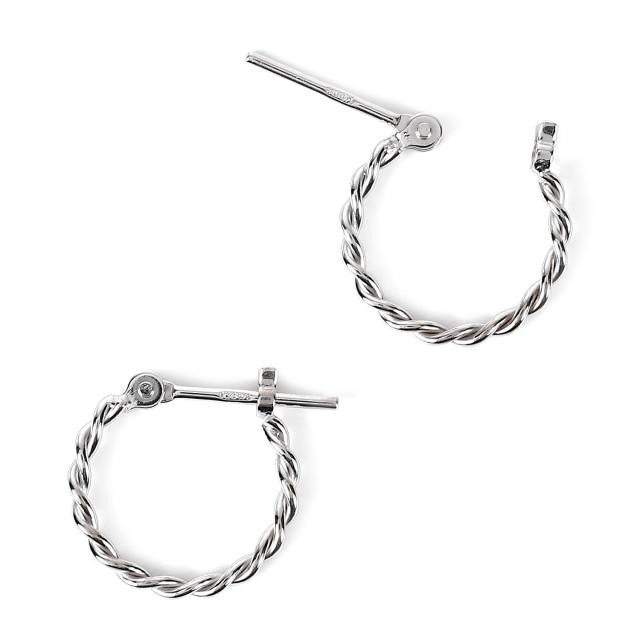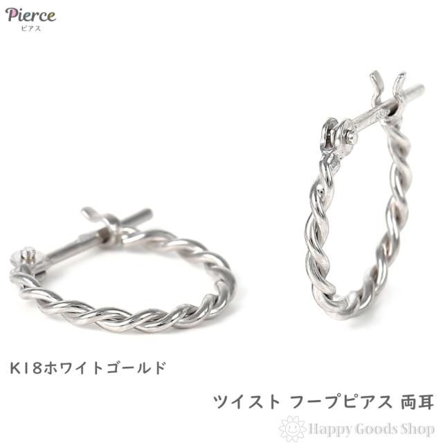 18金 フープピアス ツイスト デザイン 両耳 ホワイトゴールド リング ピアス ねじれ ヒネリ アクセサリー