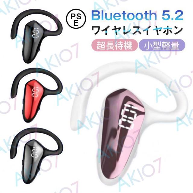 片耳イヤホン ブルートゥースイヤホン Bluetooth 5.2 ワイヤレスイヤホン 耳掛け型 ヘッドセット PSE認証済み 超高音質 マイク内蔵 超長待機 小型軽量 軽量 ビジネス 通勤通学 多機種対応