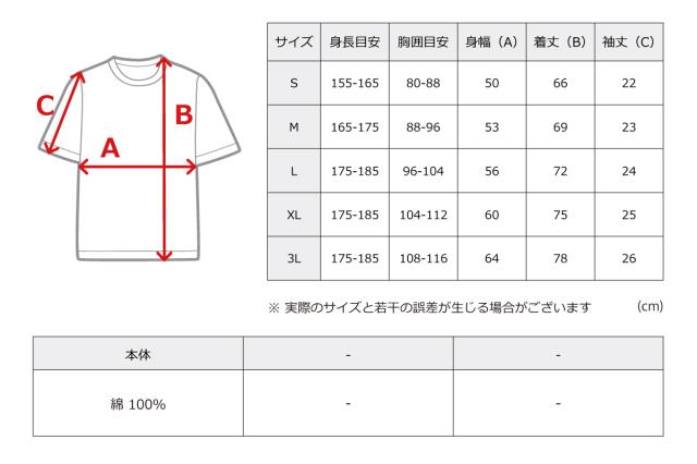 S〜3Lの豊富なサイズ展開で男女問わず着用いただけます。