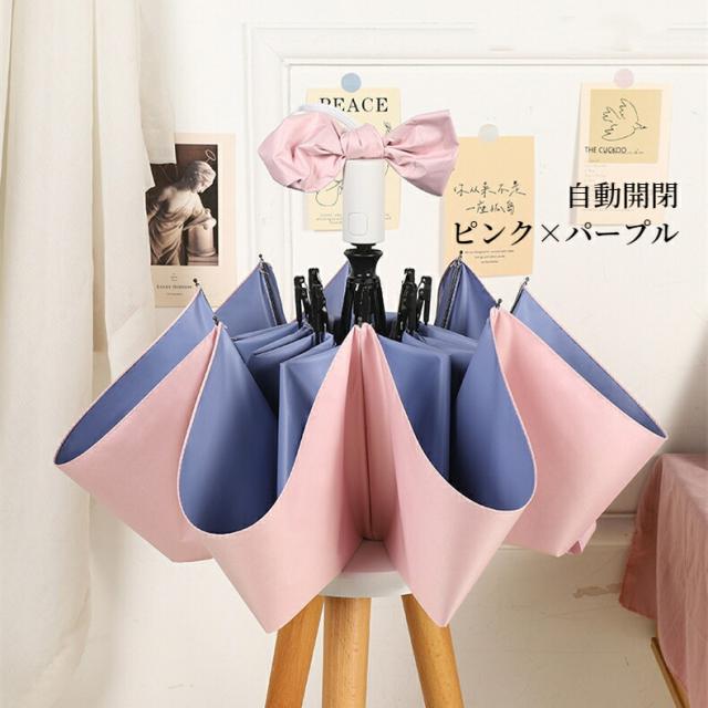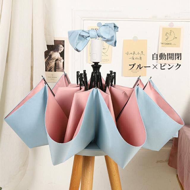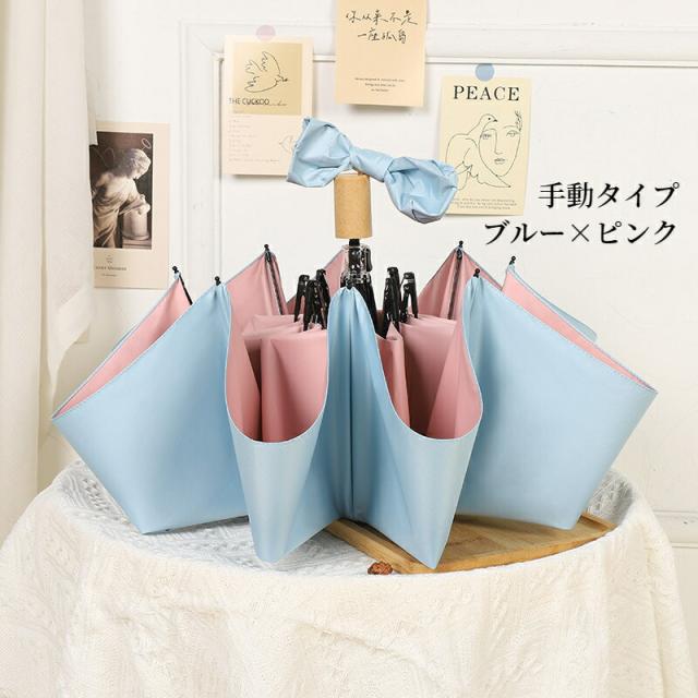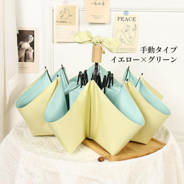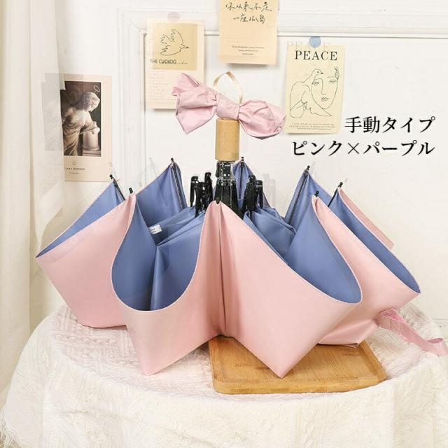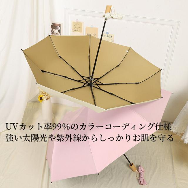 日傘 折りたたみ かわいい 上品なバイカラー 切替え配色 晴雨兼用 韓国風 自動開閉タイプ レディース 軽量 ワンタッチ 3つ 折り畳み傘 8本骨 UPF50+ UVカット 遮光 日焼け 紫外線防止 撥水 8級抗風 ひんやり 涼しいコンパクト おしゃれ