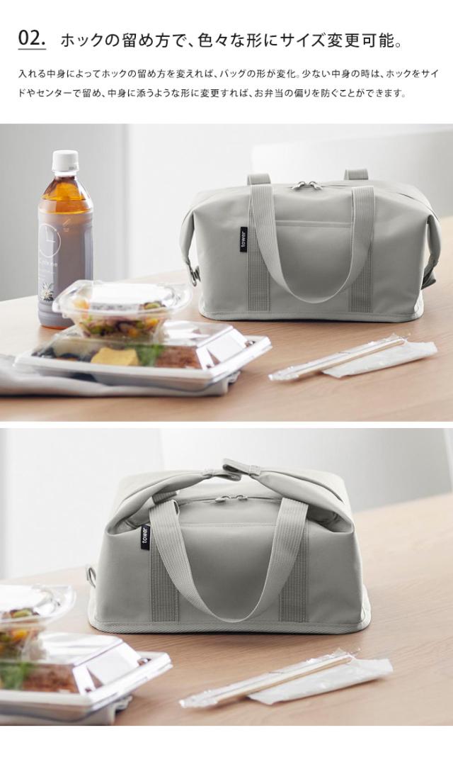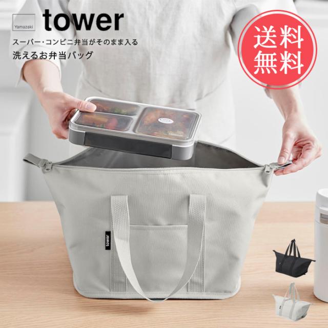 メール便送料無料 tower スーパー・コンビニ弁当がそのまま入る洗えるお弁当バッグ 【 タワー ランチトート 保冷バッグ クーラーバッグ クーラーボックス 折りたたみ コンパクト おしゃれ シンプル マチ広 ランチ 弁当袋 お花見 ピクニック】