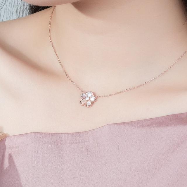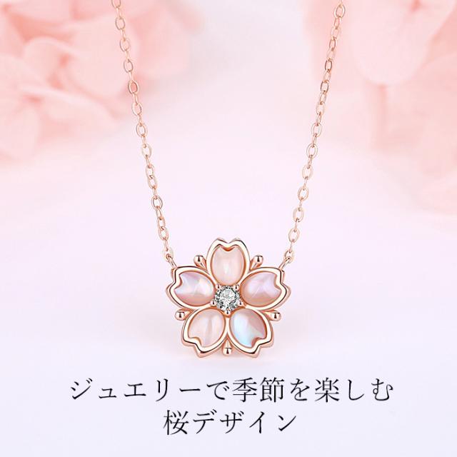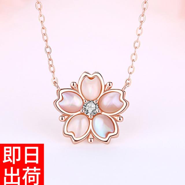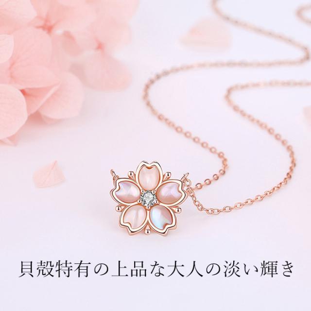 桜 貝殻 シェル さくら ネックレス レディース ピンクゴールド仕上 シルバー925 金属アレルギー対応 豪華 彼女 ジュエリー 一粒 0.07カラット プレゼント wh_other