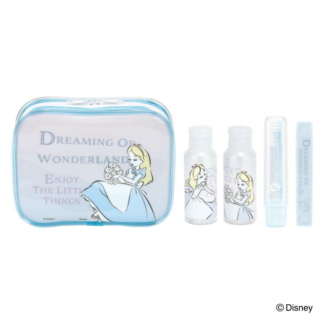 トラベルセット アリス ( ディズニー 歯ブラシ 化粧水 乳液 ボトル ブラシ 携帯用 ポーチ 携帯用トラベルセット 歯ブラシ付き トラベルキット ケース付き ポーチ付き トラベル セット )