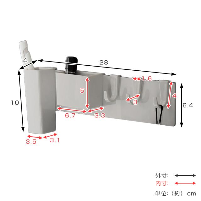 | 内容量 | 1個 (本体バー×1、フック×3、浅型ワイドポケット×1、深型スリムポケット×1) |