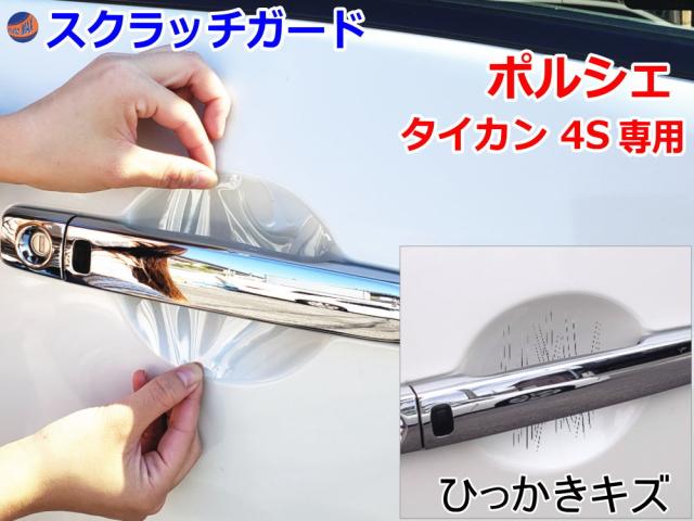 ドアノブスクラッチガード (ポルシェ タイカン 4S) 車種専用 カット済み ドア 傷 防止 フィルム ガード ドアカップ スクラッチ PPFフィルム ペイント プロテクションフィルム 擦りキズ ひっかき 保護 クリア 透明 ポルシェ用