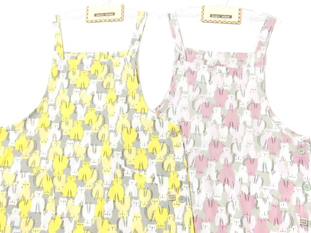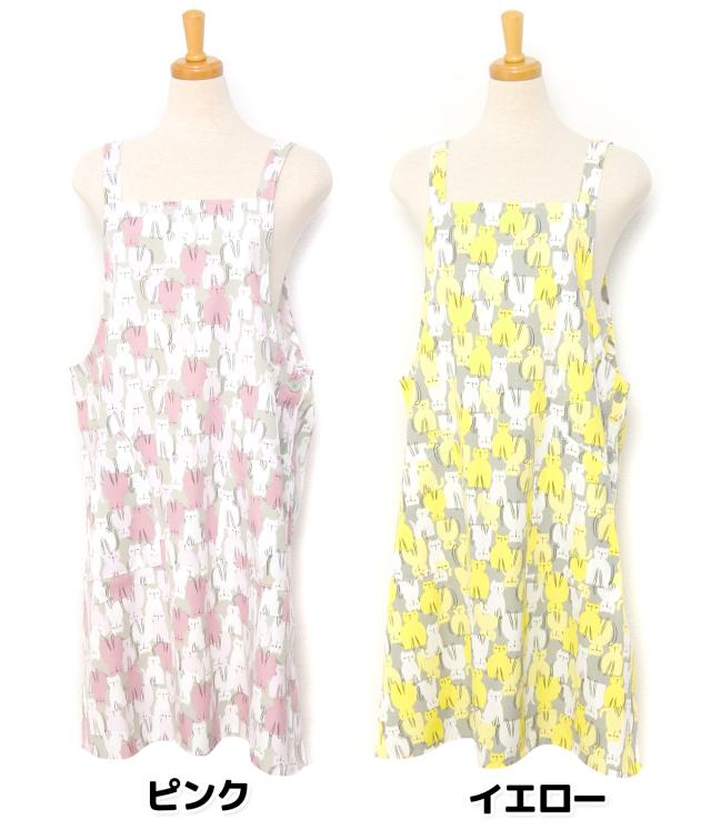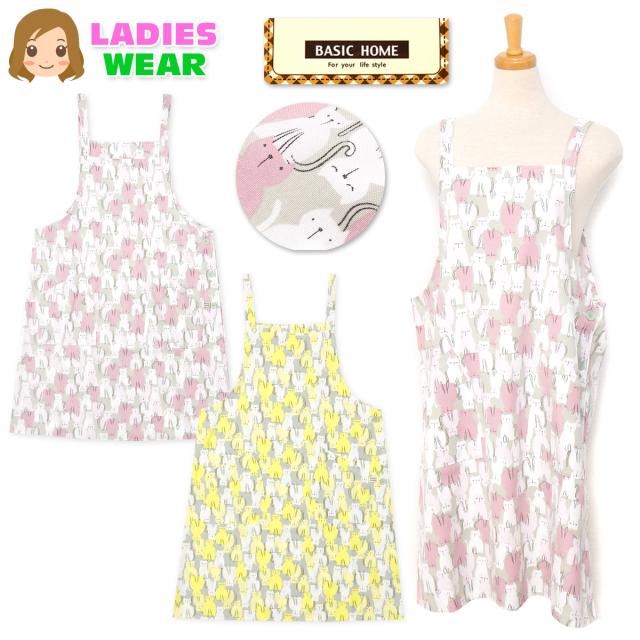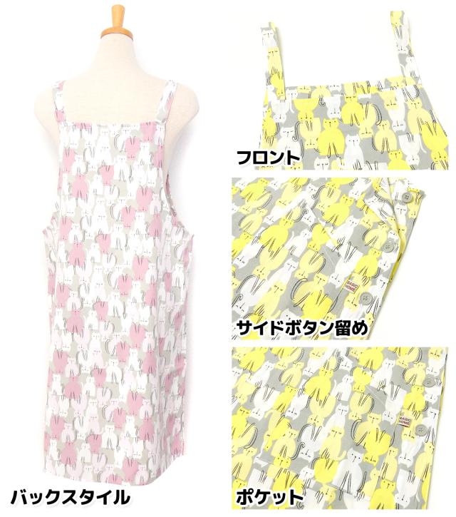 【送料無料】婦人 レディース ボックス型 エプロン サイドボタン留め 丈長め フレアシルエット Aライン ねこ柄 sl-0460【メール便対応】