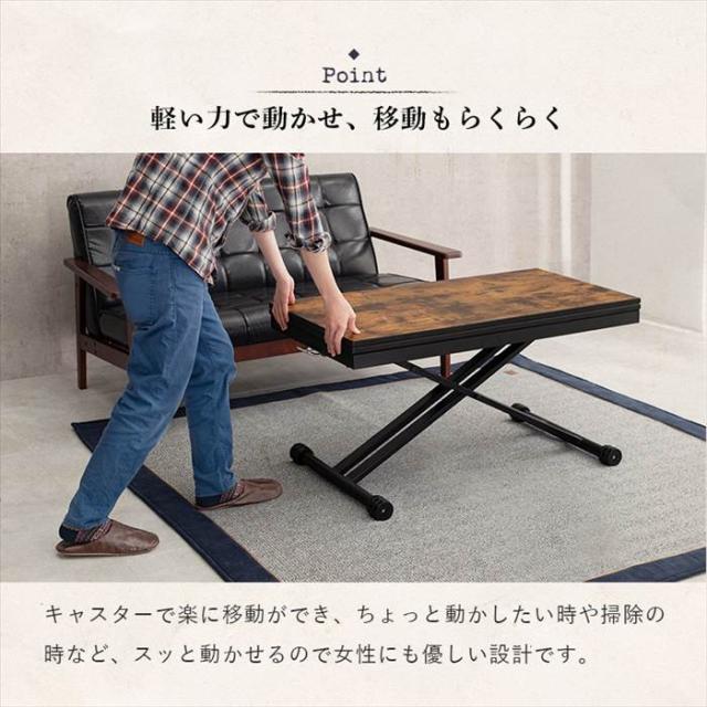 昇降式テーブル コンパクト 通販 KT-3197 エクステンション昇降テーブル リフティングテーブル センターテーブル ダイニングテーブル 昇降式デスク 昇降デスク 伸縮 伸長式 おしゃれ 木目調 幅99〜92×奥行45/90 高さ無段階調節 家具 インテリア