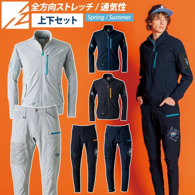 アイズフロンティア エアーダクトA.D.ストレッチワークジャケット ジョガーパンツ 上下セット 3280 3282 接触冷感 UVカット UPF50 通気 透け防止 メンズ 春夏 作業着 作業服 I’Z FRONTIER