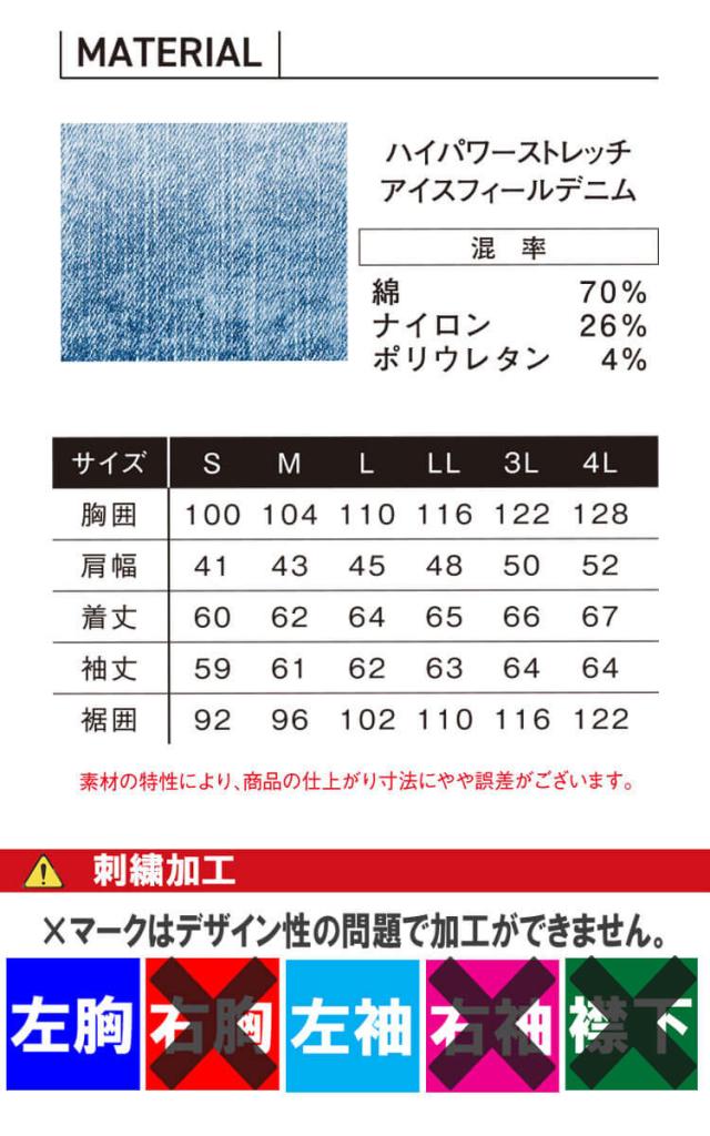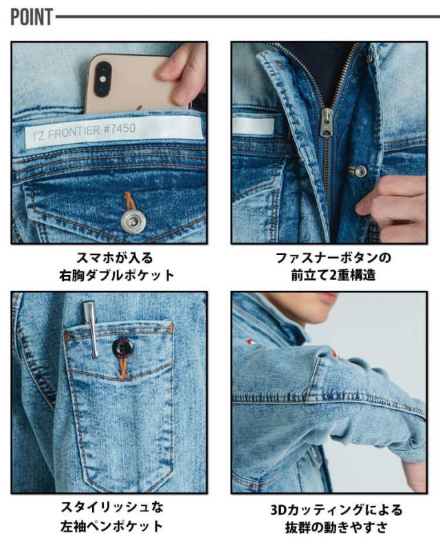 [3/21入荷予約]アイズフロンティア IZ FRONTIER 接触冷感ストレッチデニムワークジャケット 7450 春夏 作業服
