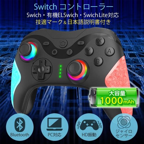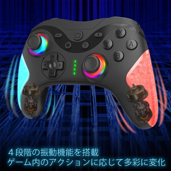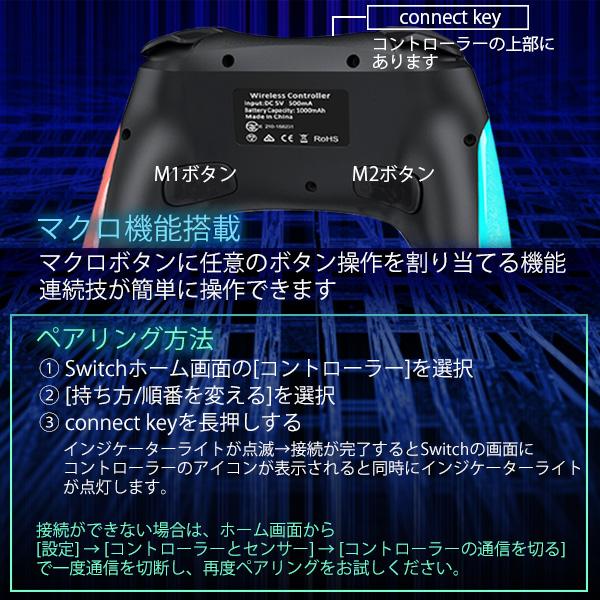 Switch コントローラー TURBO連射 スイッチ マクロ機能 1000mAh 大容量 背面ボタン付き Bluetooth 無線接続 9色RGBライト ジャイロセンサー搭載 日本語説明書付き (管理S) 送料無料