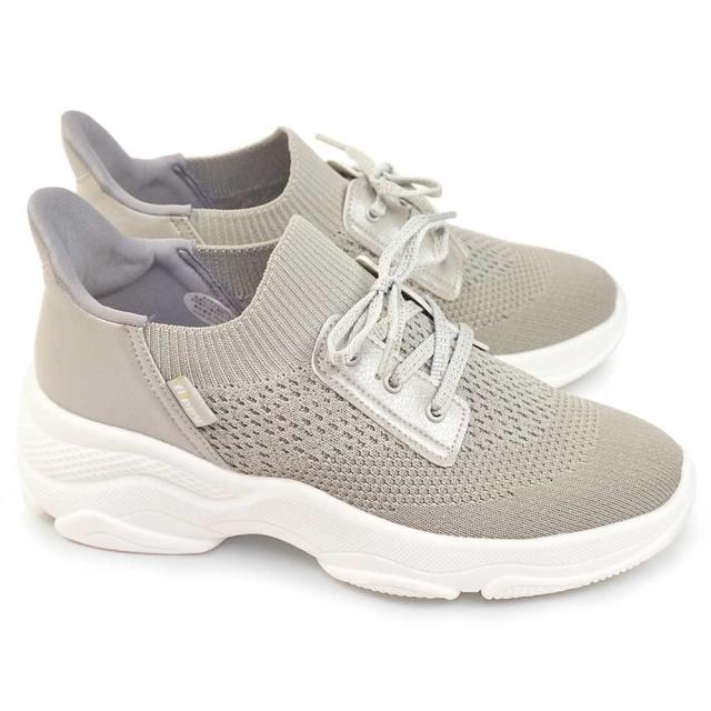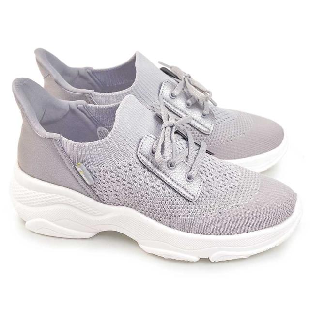 手を使わずにサッと脱ぎ履きができる快適設計のニットスニーカー。