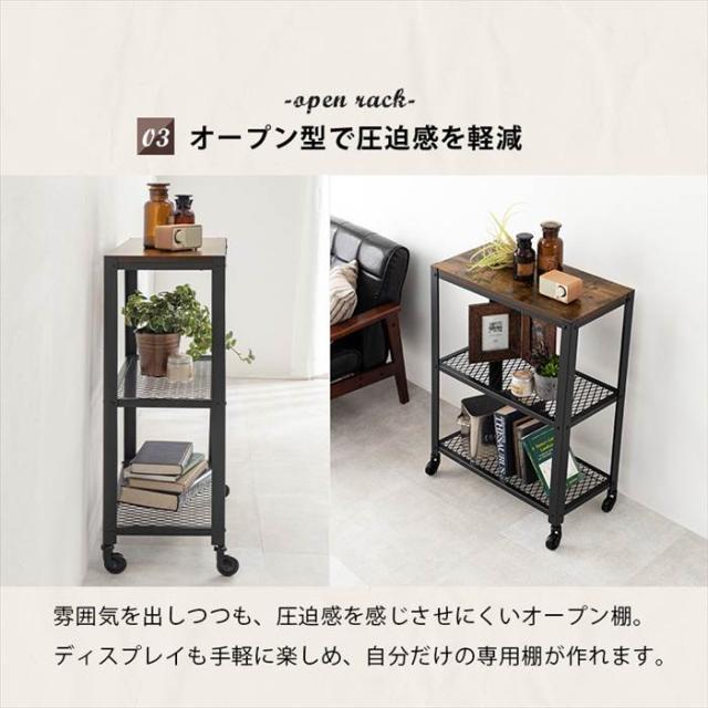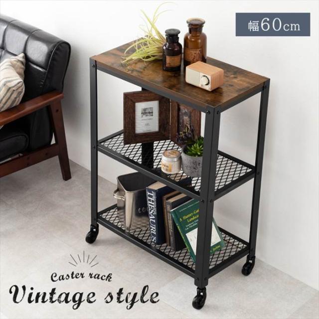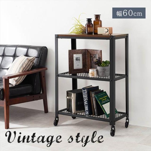 オープンラック 3段 通販 KR-3765 オープンシェルフ スチールラック ディスプレイラック 収納棚 ディスプレイ 棚 キャスター付き メッシュラック おしゃれ シンプル 男前 ヴィンテージ 幅60×奥行30×高さ87.5cm 収納家具 家具 インテリア