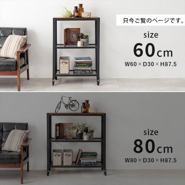 | 商品説明 | ・■組立式/■キャスター付 ・■天板:約幅60×奥行30cm/■固定棚:約幅60×奥行30cm/■棚間隔:約34cm |