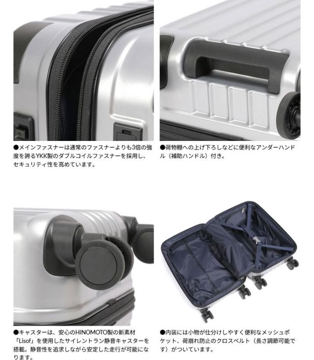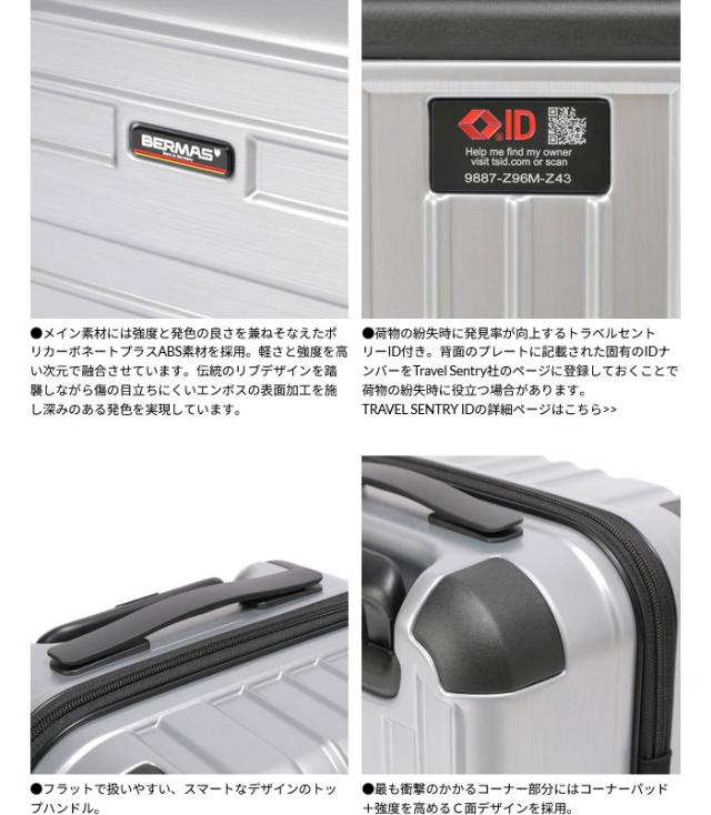 ●荷物の紛失時に発見率が向上するトラベルセントリーID付き。 背面のプレートに記載された固有のIDナンバーをTravel Sentry社のページに登録しておくことで荷物の紛失時に役立つ場合があります。